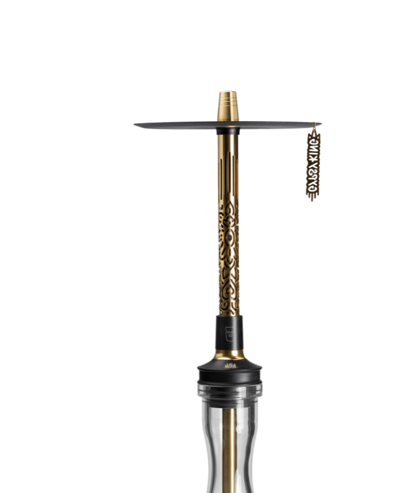 נרגילה העשויה פלדת אל-חלד ומכוסה בציפוי מוזהב מטיטניום.